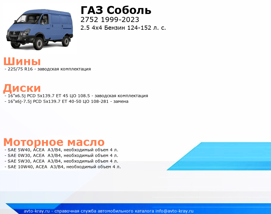 Соболь 2.5 4x4 Бензин 124-152 л. с.