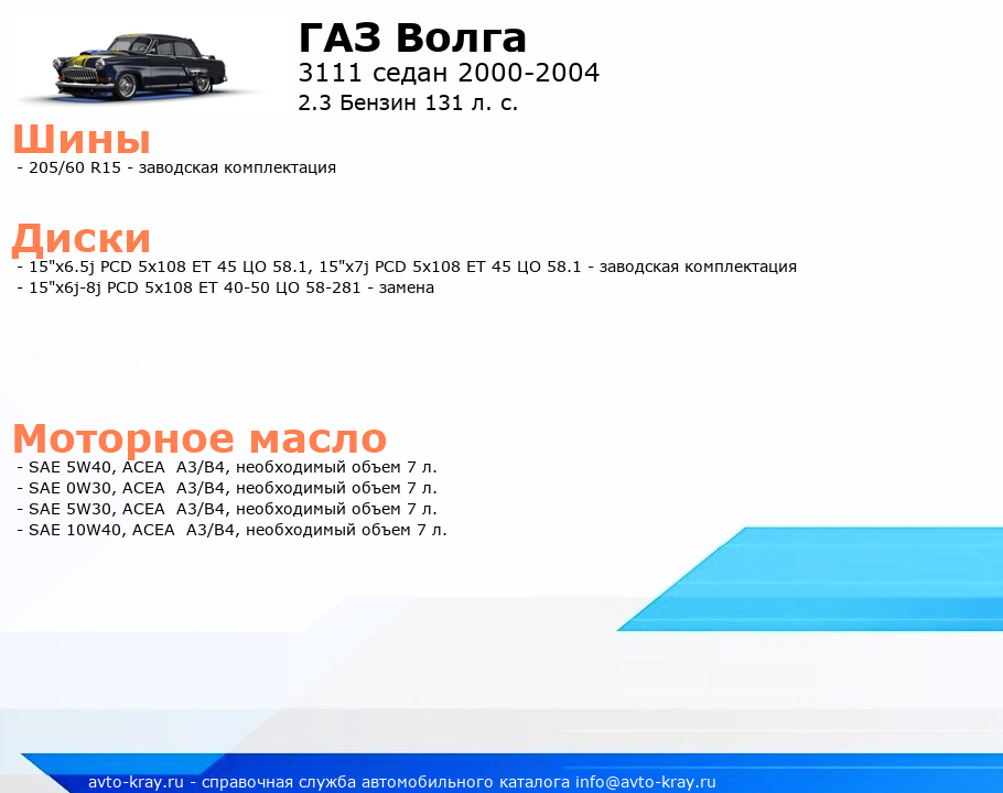 Волга 2.3 Бензин 131 л. с.