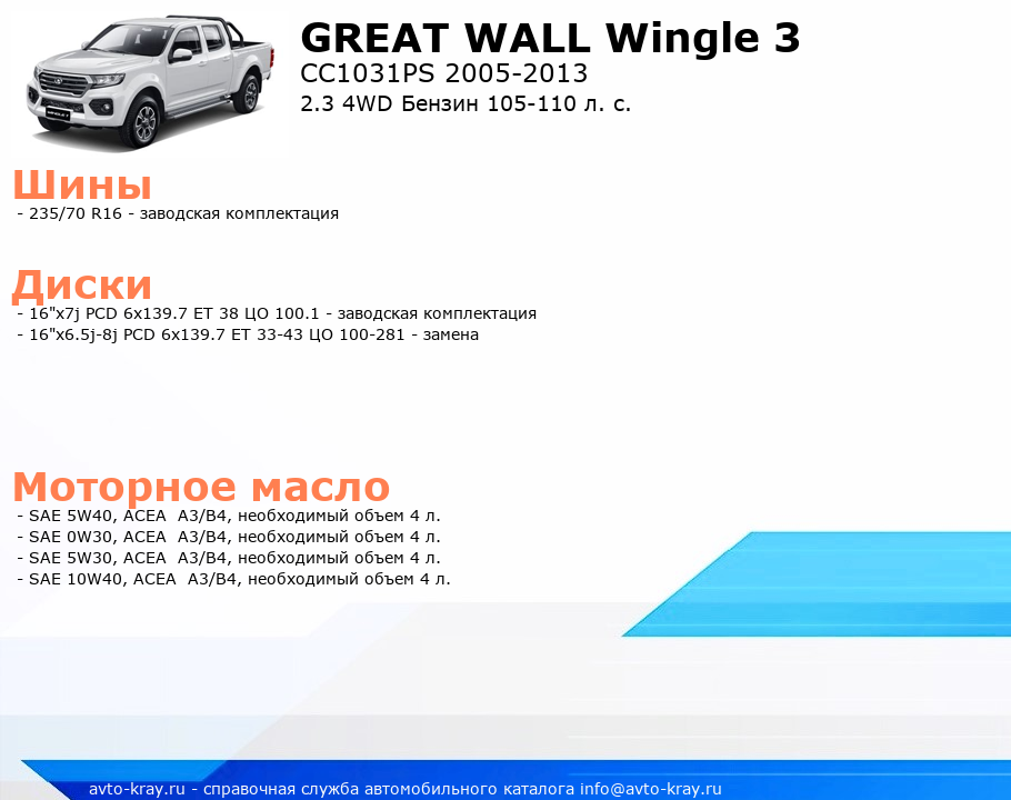 Wingle 3 2.3 4WD Бензин 105-110 л. с.