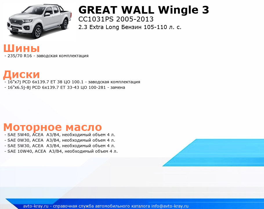 Wingle 3 2.3 Extra Long Бензин 105-110 л. с.