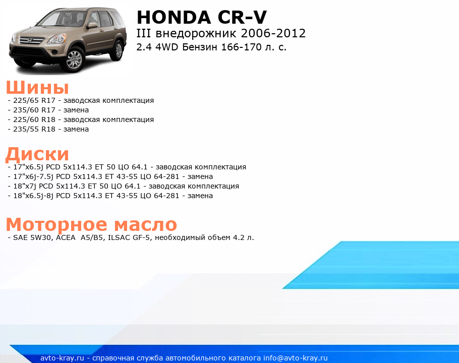 CR-V 2.4 4WD Бензин 166-170 л. с.
