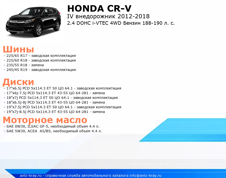 CR-V 2.4 DOHC i-VTEC 4WD Бензин 188-190 л. с.