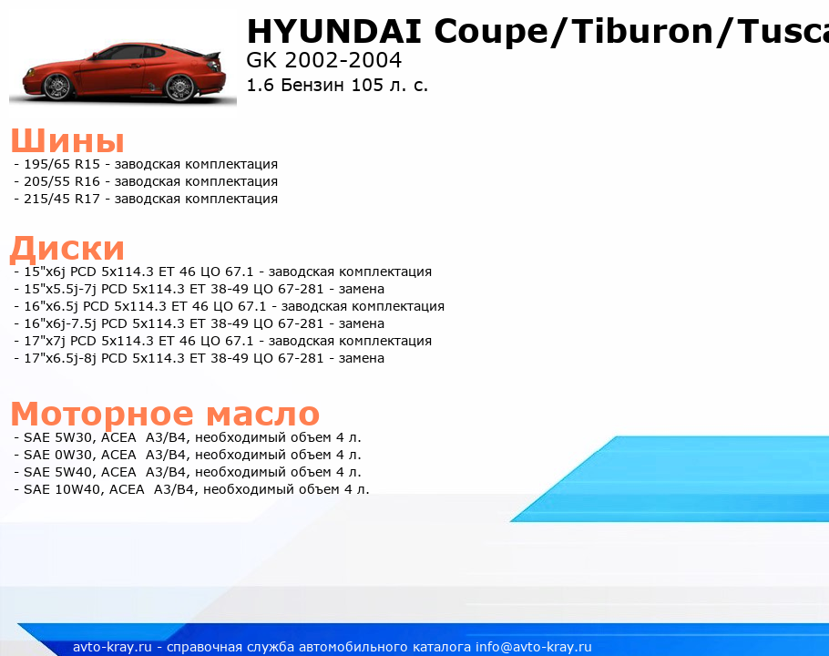 Coupe/Tiburon/Tuscani 1.6 Бензин 105 л. с.