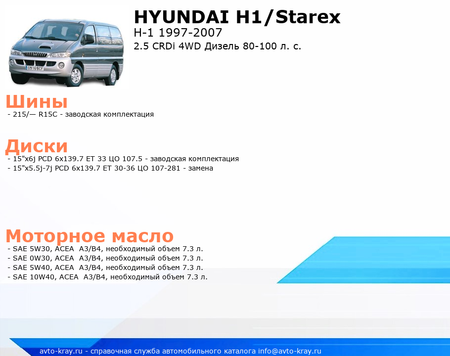 H1/Starex 2.5 CRDi 4WD Дизель 80-100 л. с.