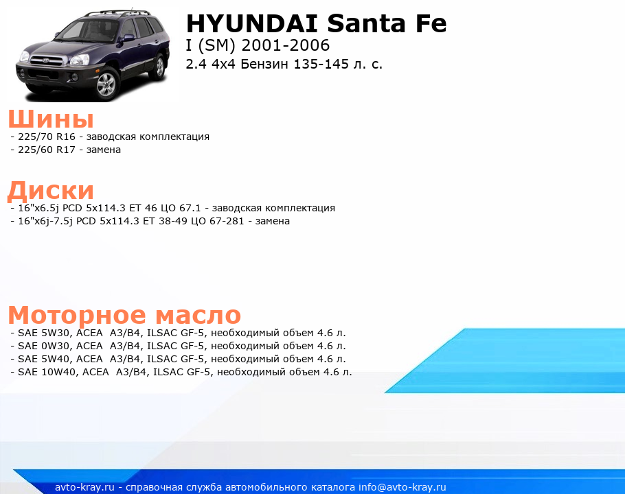 Santa Fe 2.4 4x4 Бензин 135-145 л. с.
