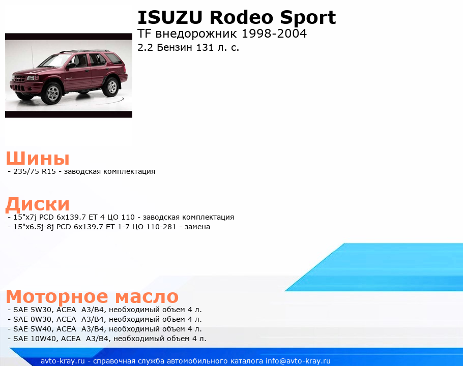 Rodeo Sport 2.2 Бензин 131 л. с.