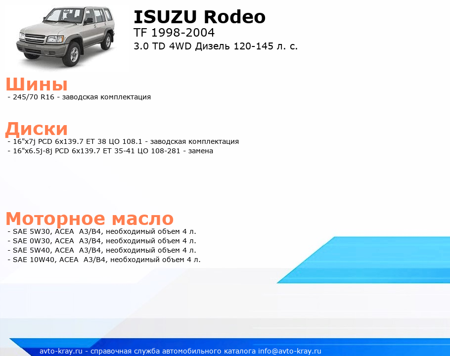 Rodeo 3.0 TD 4WD Дизель 120-145 л. с.