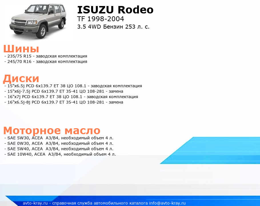 Rodeo 3.5 4WD Бензин 253 л. с.