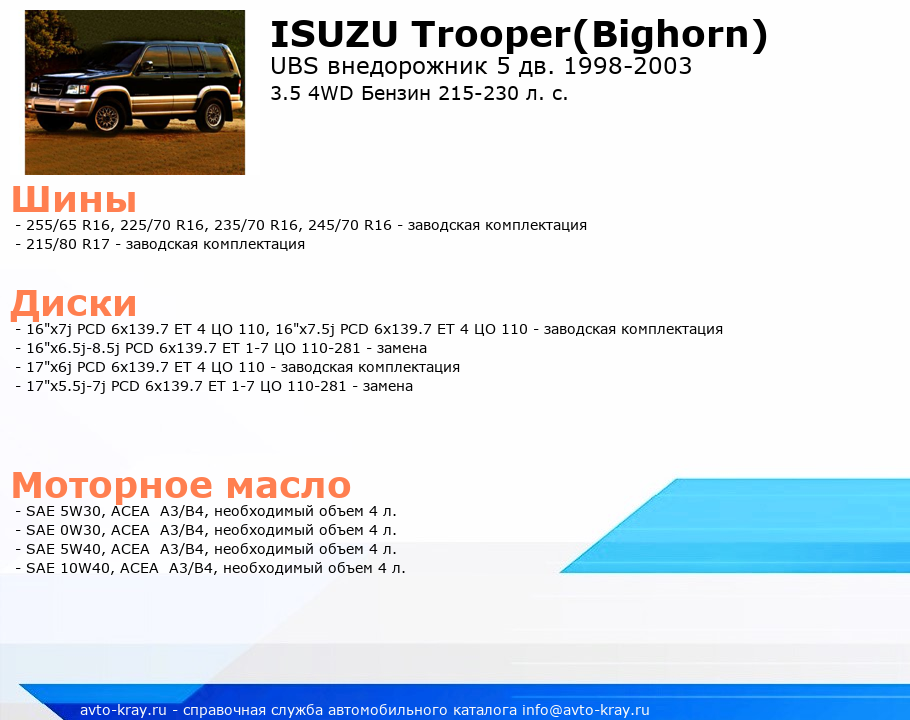 Trooper(Bighorn) 3.5 4WD Бензин 215-230 л. с.