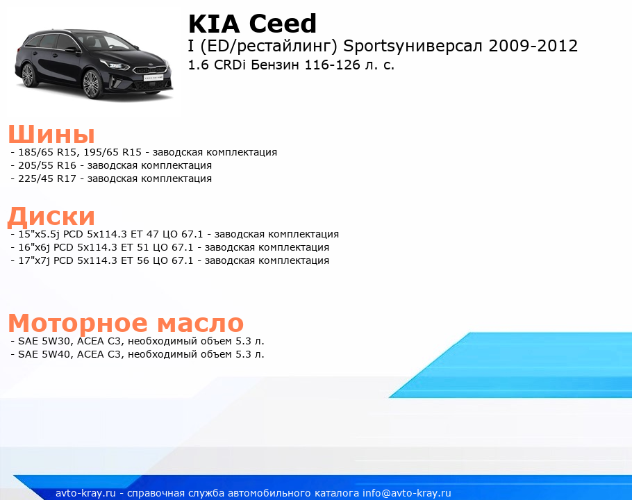 Ceed 1.6 CRDi Бензин 116-126 л. с.