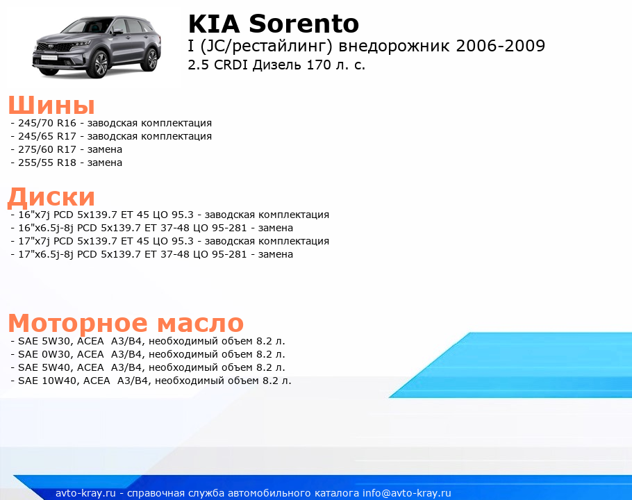 Sorento 2.5 CRDI Дизель 170 л. с.