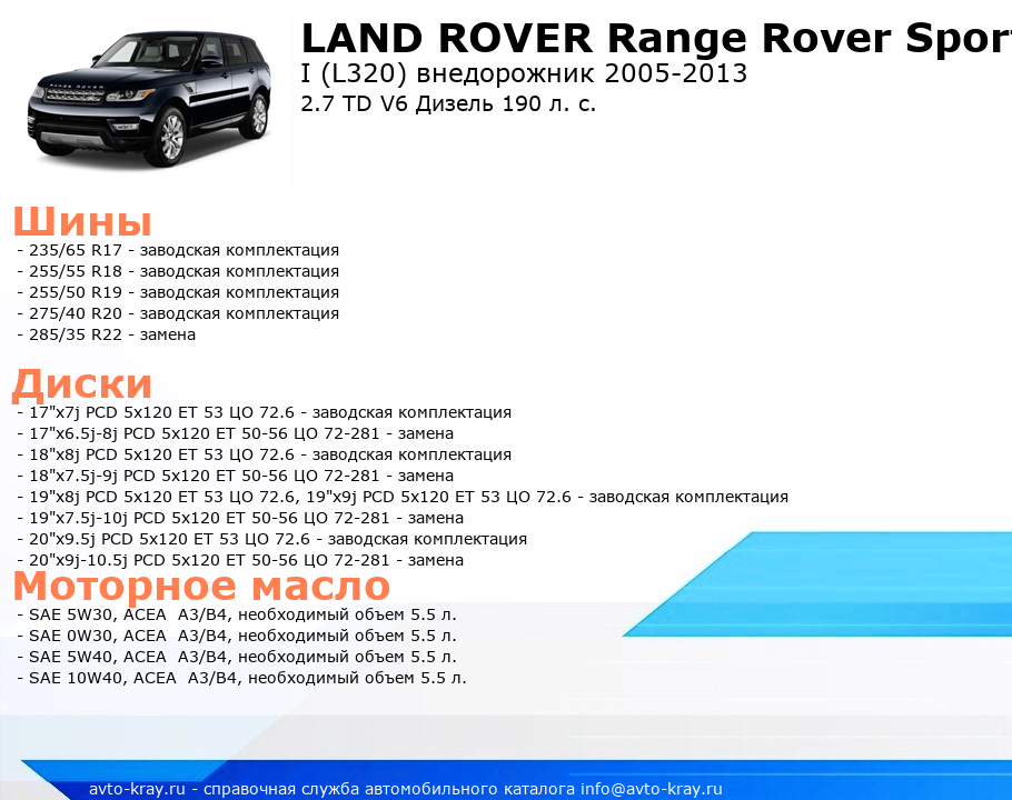 Range Rover Sport 2.7 TD V6 Дизель 190 л. с.