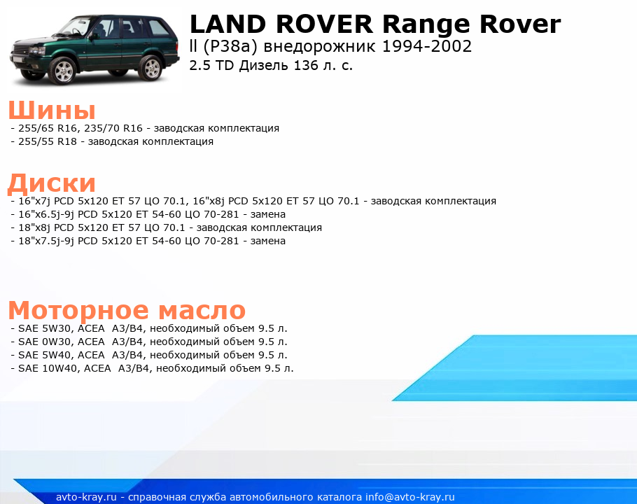 Range Rover 2.5 TD Дизель 136 л. с.