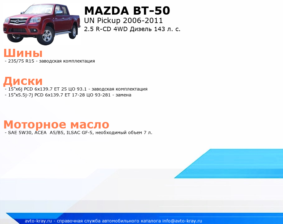 BT-50 2.5 R-CD 4WD Дизель 143 л. с.