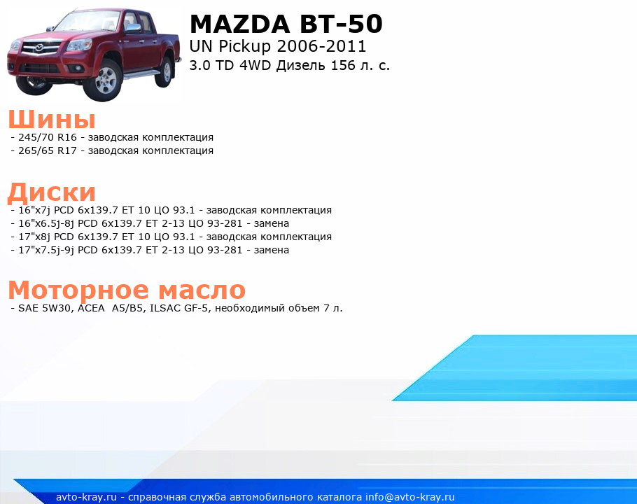 BT-50 3.0 TD 4WD Дизель 156 л. с.