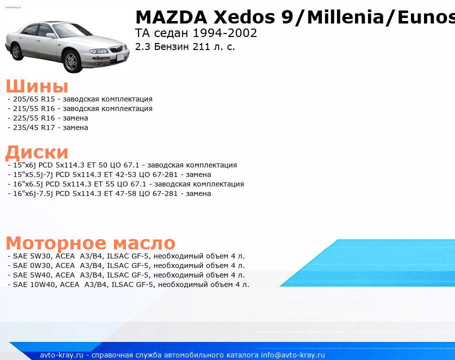 Xedos 9/Millenia/Eunos 800 2.3 Бензин 211 л. с.
