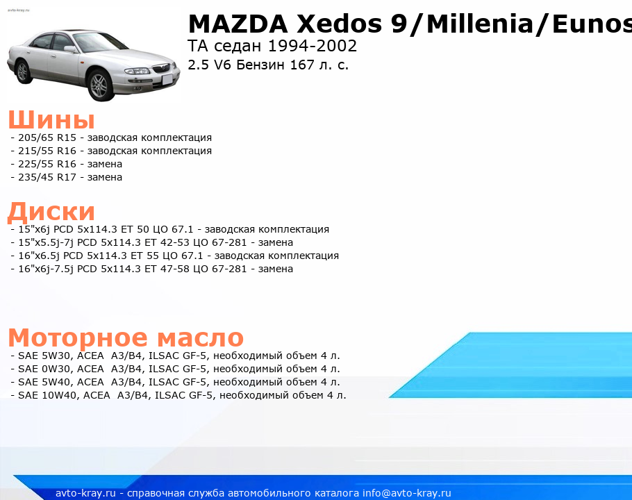 Xedos 9/Millenia/Eunos 800 2.5 V6 Бензин 167 л. с.