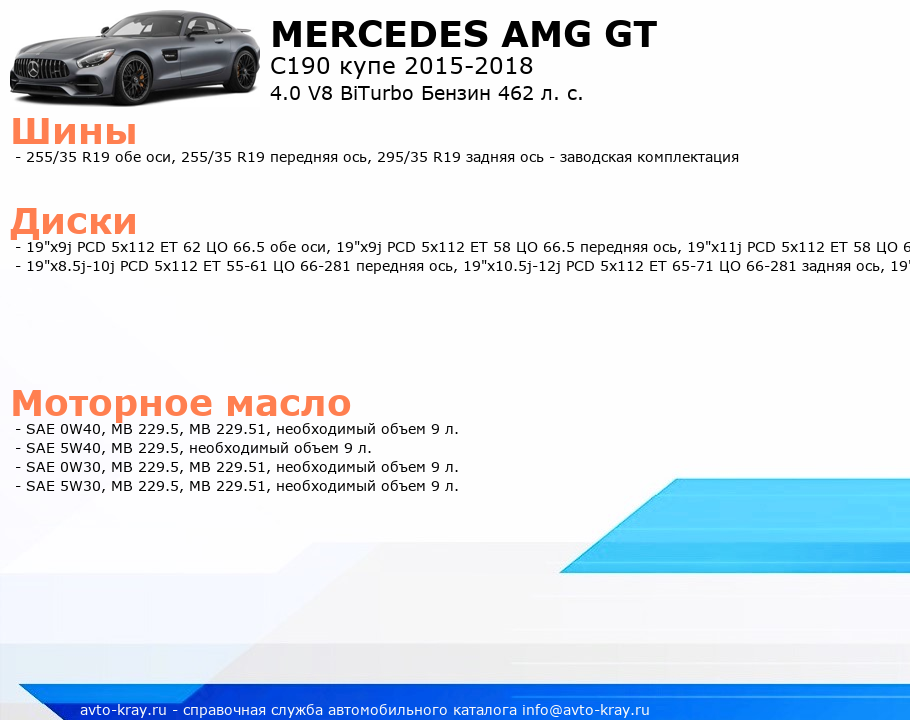 AMG GT 4.0 V8 BiTurbo Бензин 462 л. с.