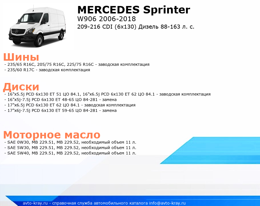 Sprinter 209-216 CDI (6x130) Дизель 88-163 л. с.