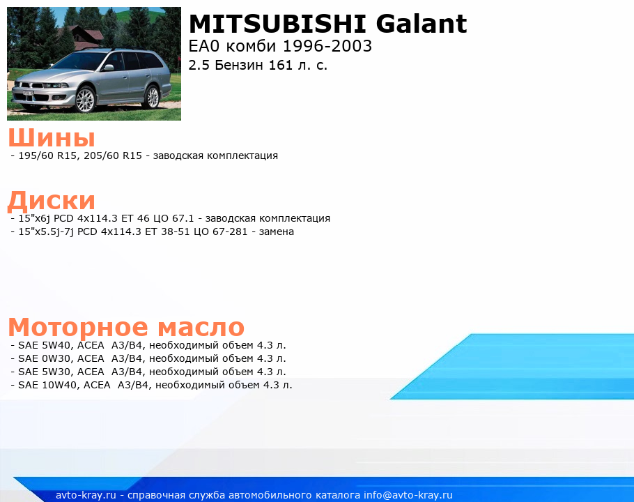 Galant 2.5 Бензин 161 л. с.