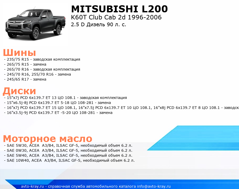 L200 2.5 D Дизель 90 л. с.