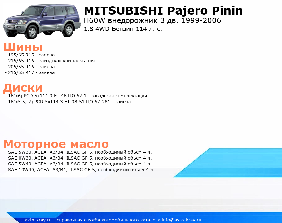 Pajero Pinin 1.8 4WD Бензин 114 л. с.
