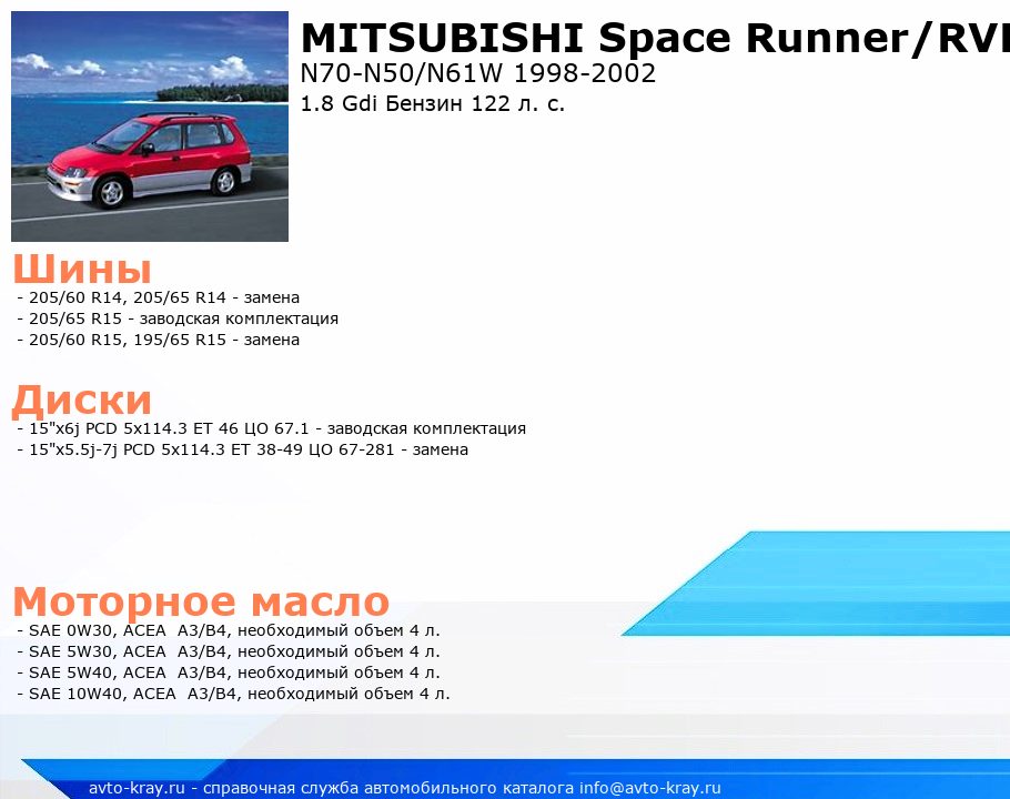 Space Runner/RVR 1.8 Gdi Бензин 122 л. с.