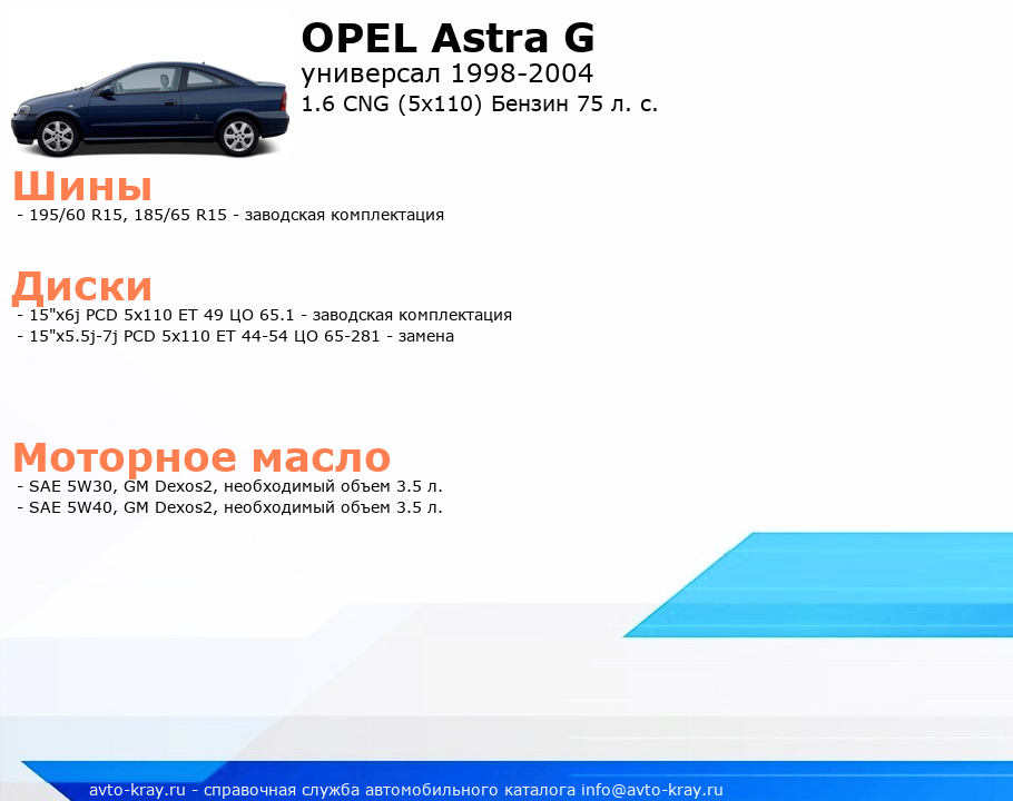 Astra G 1.6 CNG (5x110) Бензин 75 л. с.