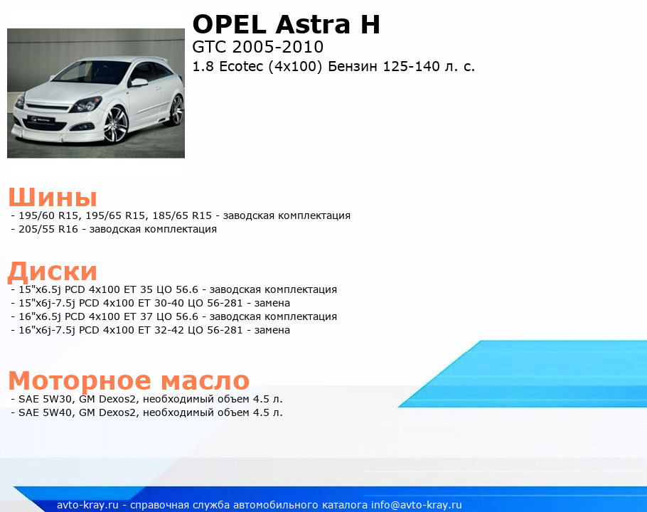 Astra H 1.8 Ecotec (4x100) Бензин 125-140 л. с.