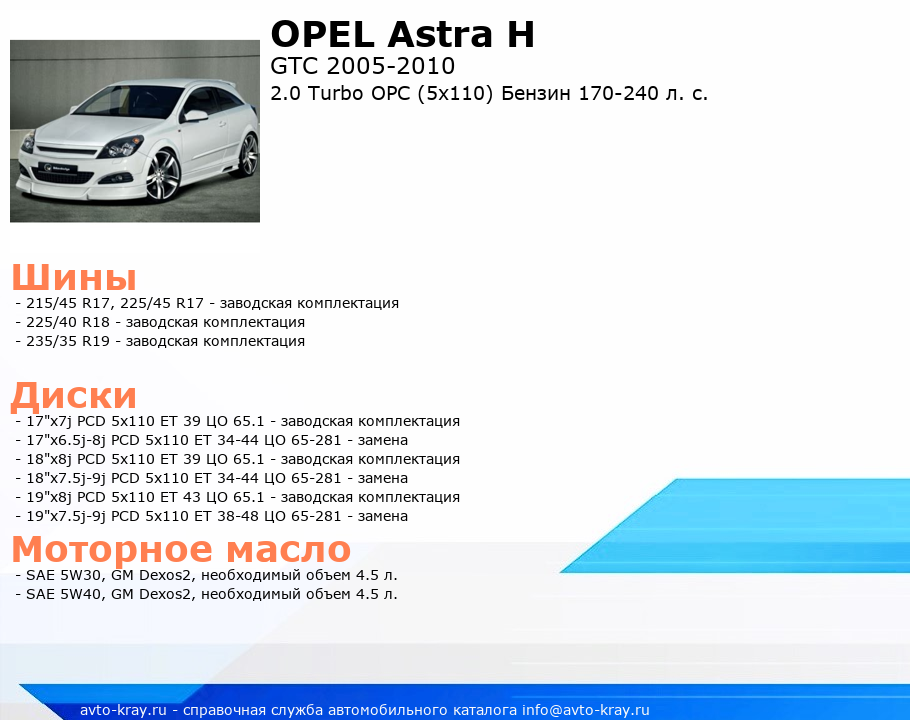 Astra H 2.0 Turbo OPC (5x110) Бензин 170-240 л. с.