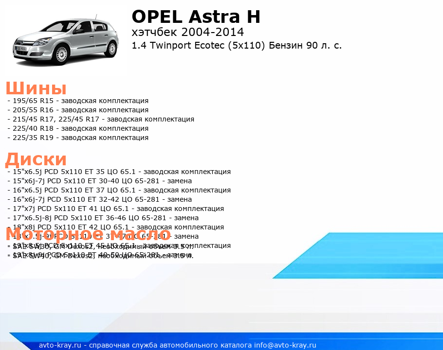 Astra H 1.4 Twinport Ecotec (5x110) Бензин 90 л. с.