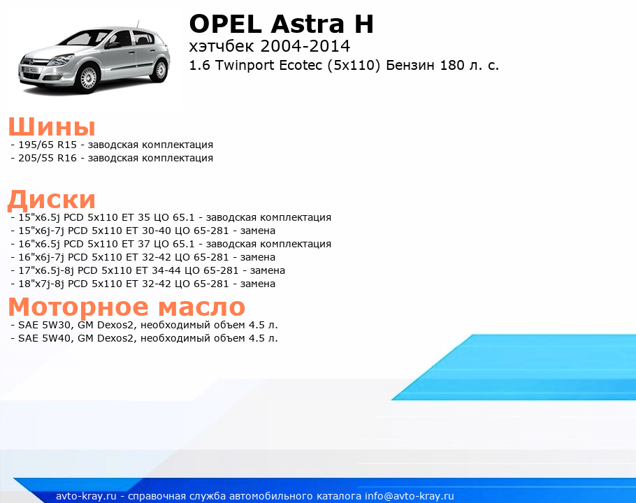 Astra H 1.6 Twinport Ecotec (5x110) Бензин 180 л. с.