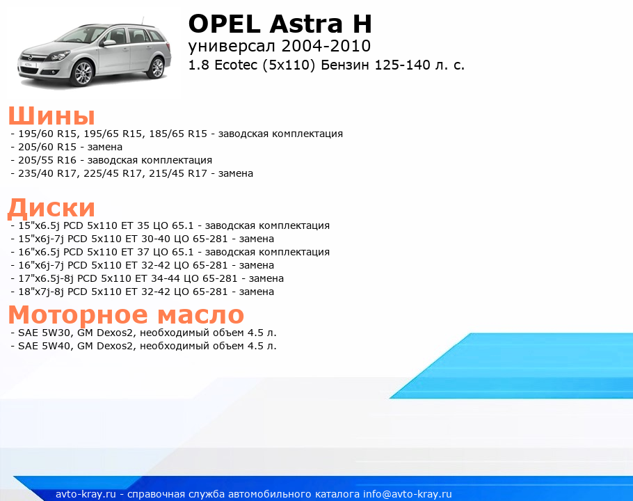 Astra H 1.8 Ecotec (5x110) Бензин 125-140 л. с.