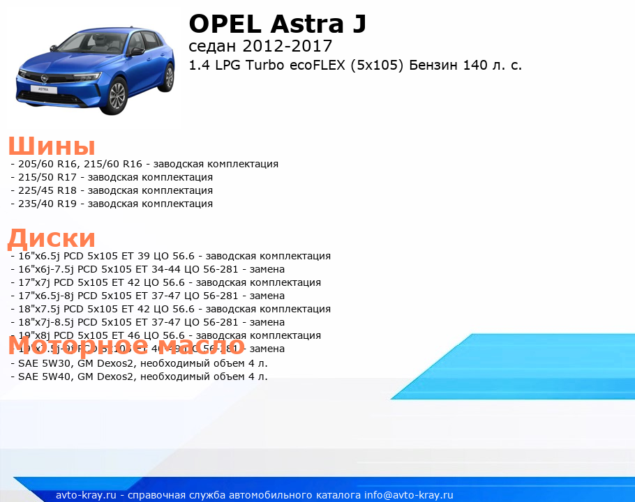 Astra J 1.4 LPG Turbo ecoFLEX (5x105) Бензин 140 л. с.