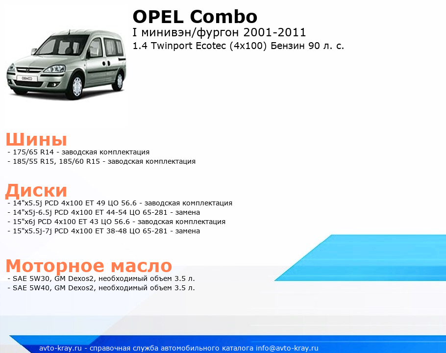 Combo 1.4 Twinport Ecotec (4x100) Бензин 90 л. с.