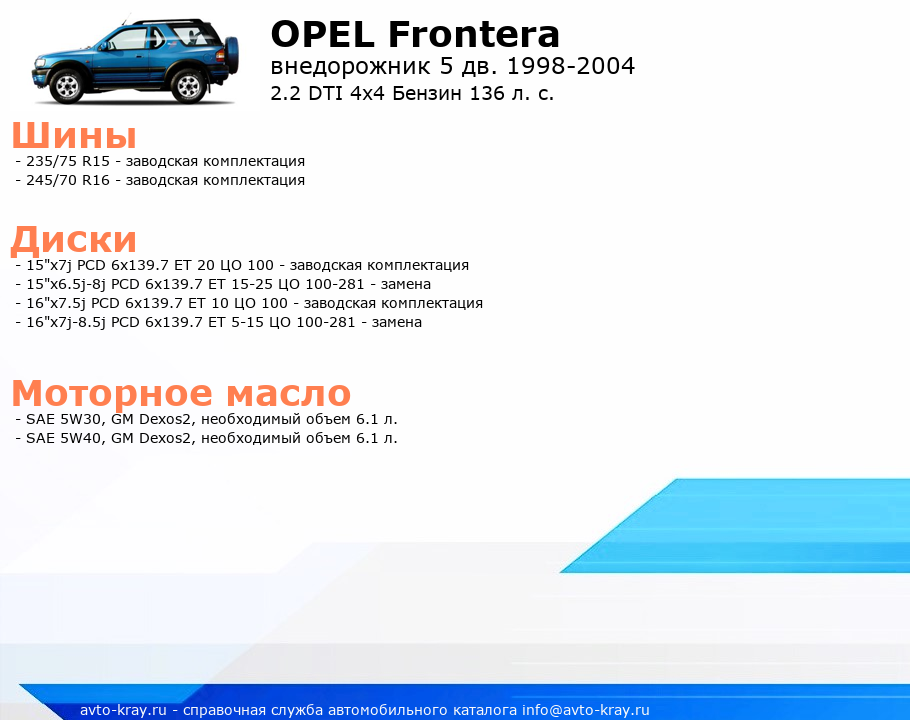 Frontera 2.2 DTI 4x4 Бензин 136 л. с.