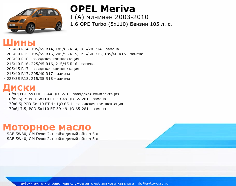 Meriva 1.6 OPC Turbo (5x110) Бензин 105 л. с.