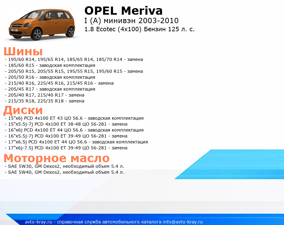 Meriva 1.8 Ecotec (4x100) Бензин 125 л. с.