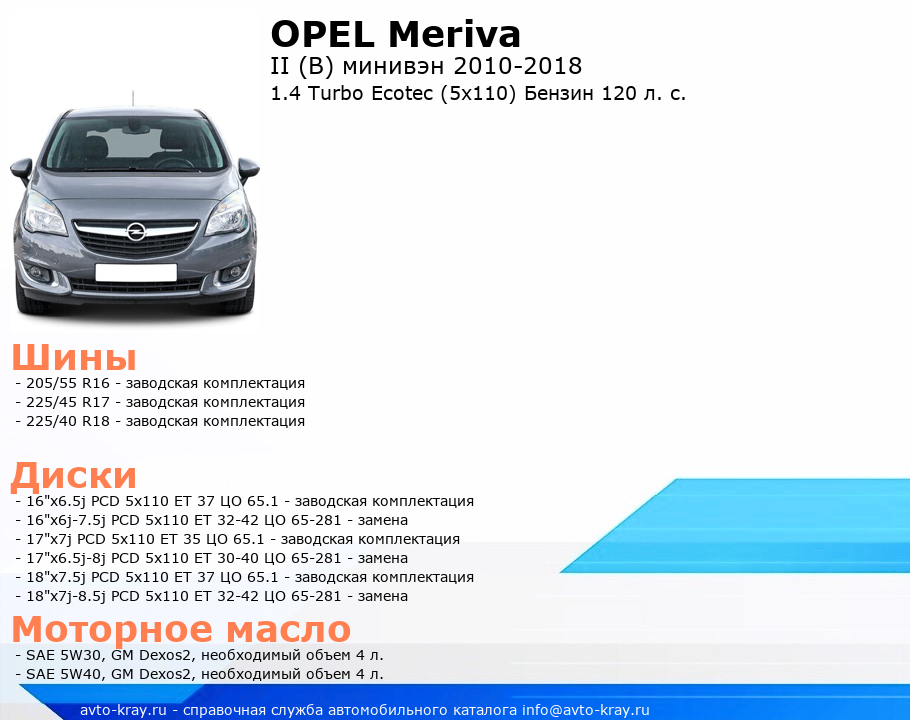 Meriva 1.4 Turbo Ecotec (5x110) Бензин 120 л. с.