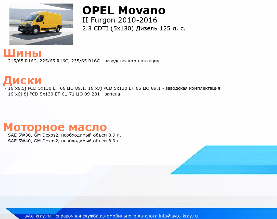 Movano 2.3 CDTI (5x130) Дизель 125 л. с.