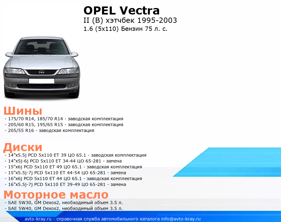 Vectra 1.6 (5x110) Бензин 75 л. с.