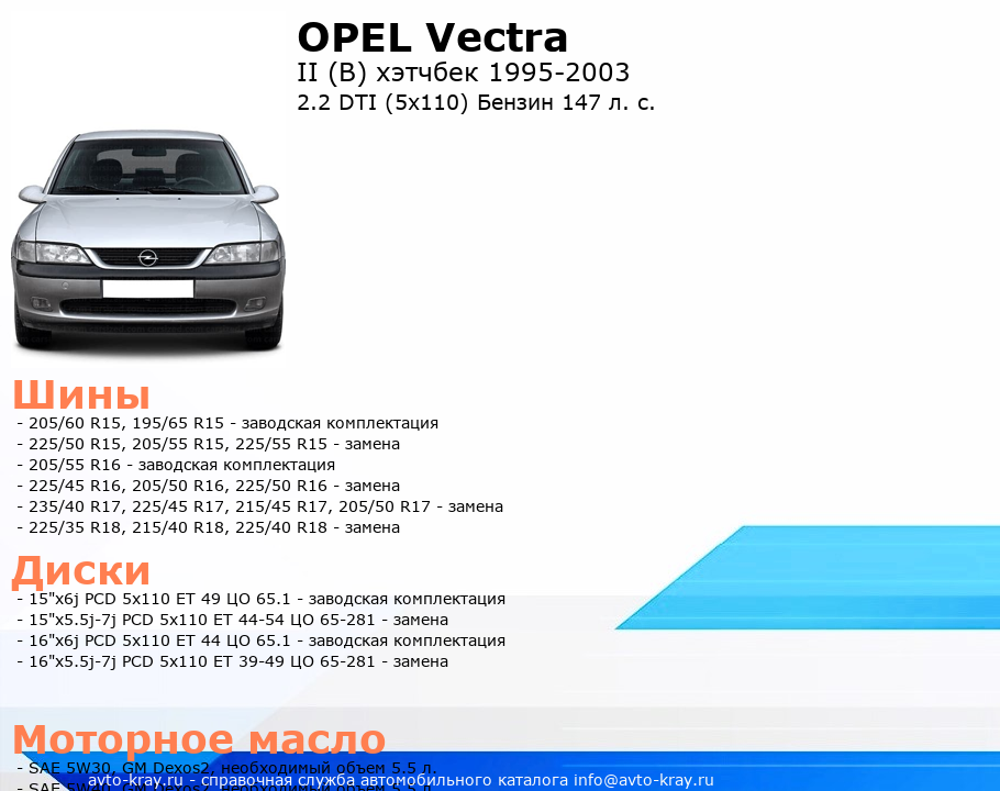 Vectra 2.2 DTI (5x110) Бензин 147 л. с.