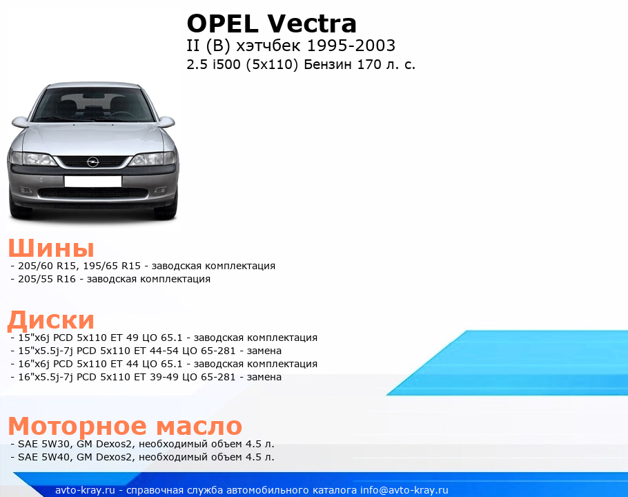 Vectra 2.5 i500 (5x110) Бензин 170 л. с.