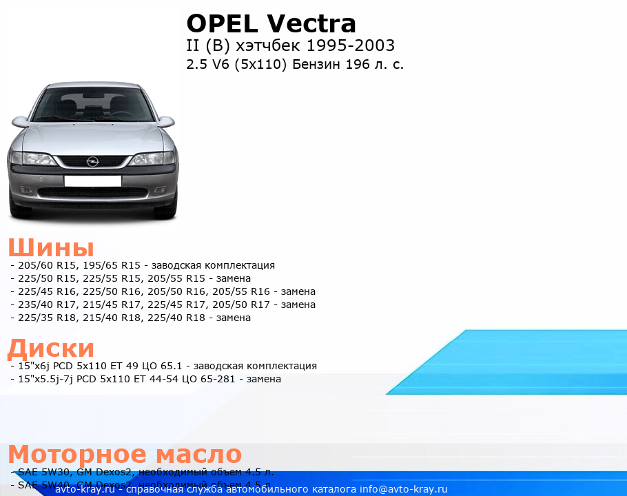 Vectra 2.5 V6 (5x110) Бензин 196 л. с.