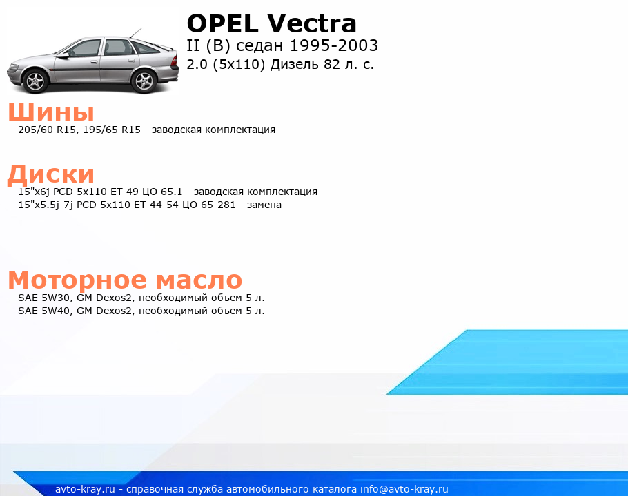 Vectra 2.0 (5x110) Дизель 82 л. с.