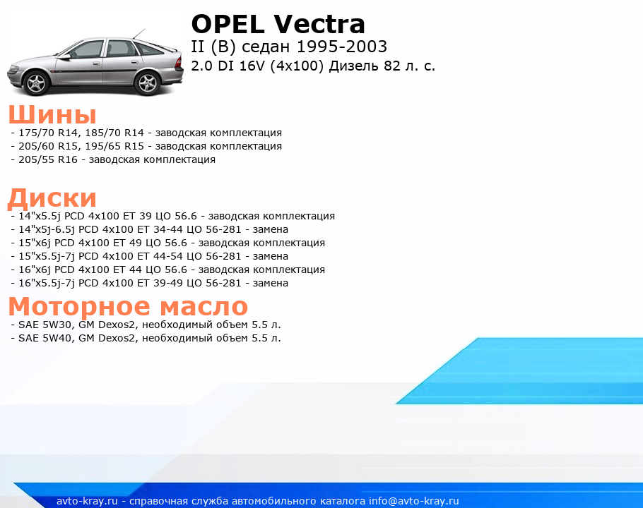 Vectra 2.0 DI 16V (4x100) Дизель 82 л. с.