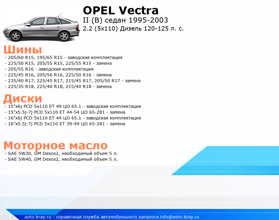 Vectra 2.2 (5x110) Дизель 120-125 л. с.