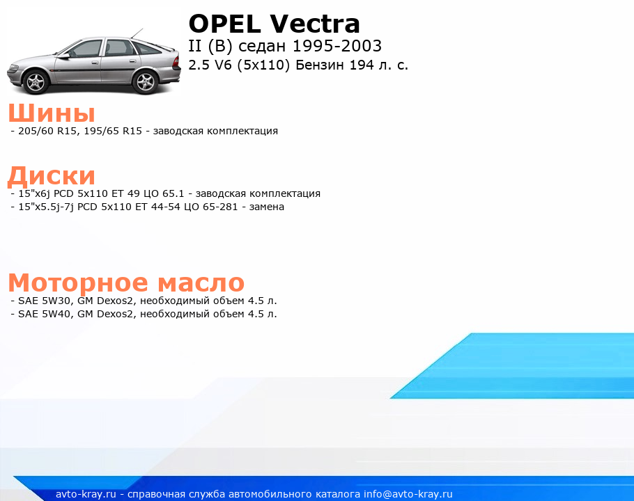 Vectra 2.5 V6 (5x110) Бензин 194 л. с.