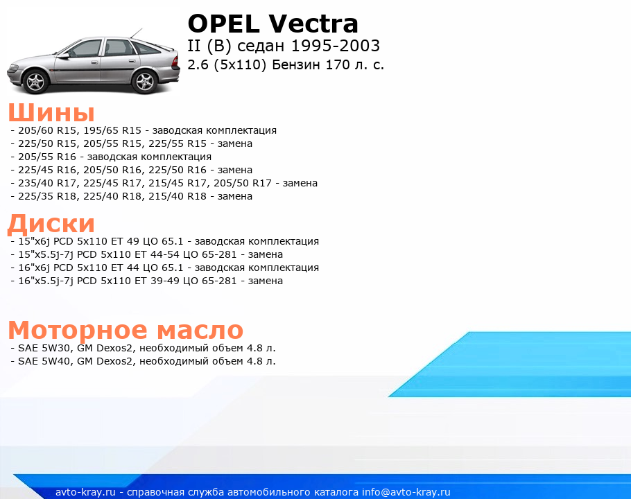 Vectra 2.6 (5x110) Бензин 170 л. с.