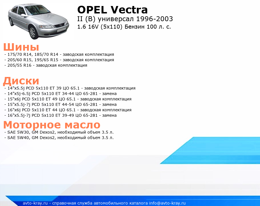 Vectra 1.6 16V (5x110) Бензин 100 л. с.